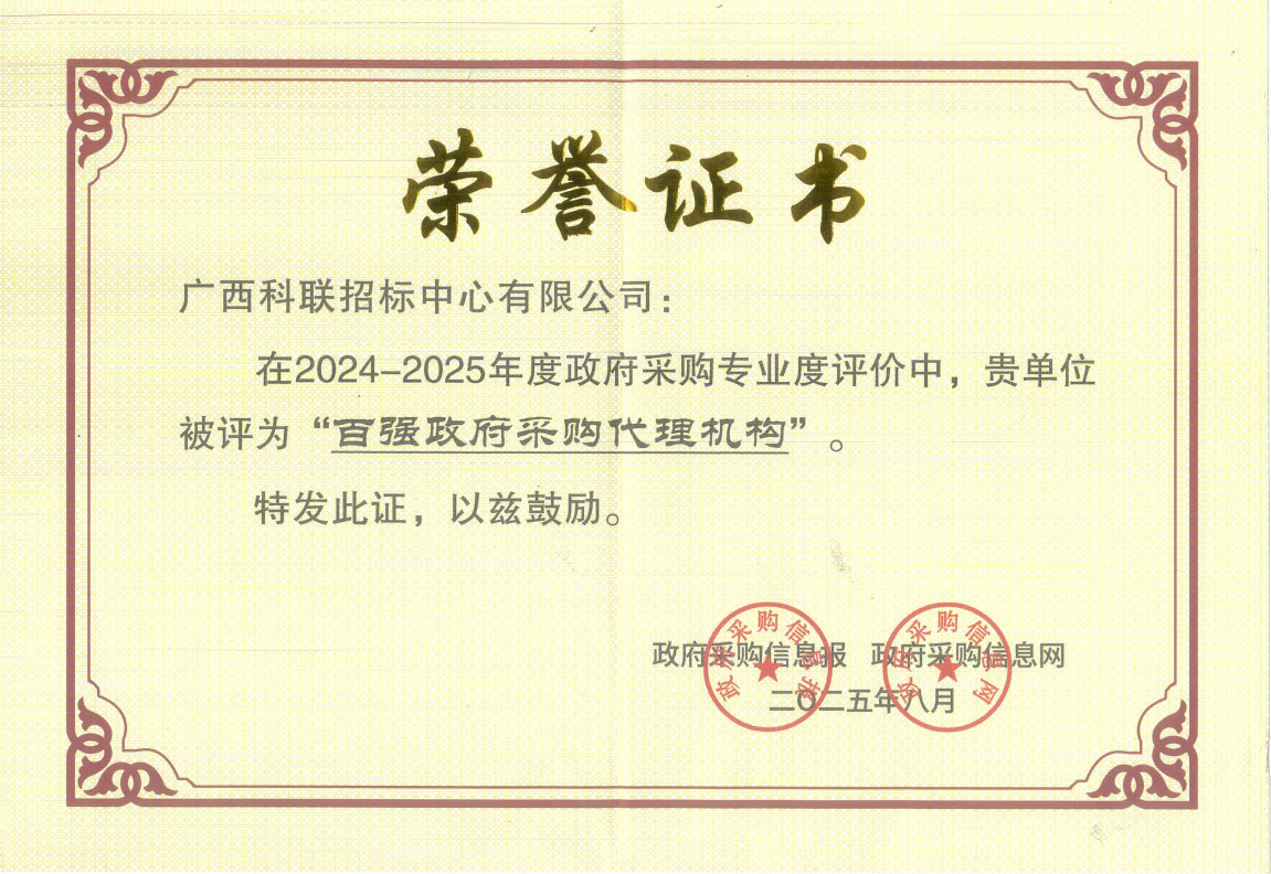 近日,业内权威评选“百强政府采购代理机构”结果正式公布,科联公司凭借卓越的专业实力、规范的服务体系与深厚的市场口碑,再度登榜,成功蝉联该项荣誉!这不仅体现了行业对科联综合竞争力的高度认可,更是对每一位科联人专注政府采购领域、始终恪守服务初心的重要肯定。